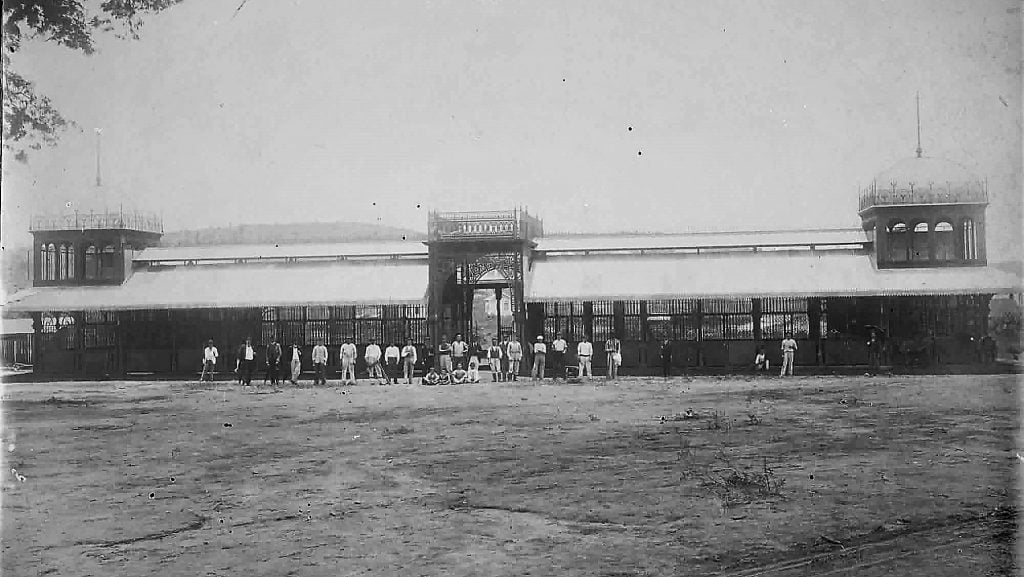 O primeiro Mercado Municipal de Belo Horizonte em foto de 1900. Obra localizada em frente à antiga Praça 14 de Fevereiro (atual Praça Rio Branco), inteiramente construída com peças metálicas importadas da Bélgica (Crédito: Arquivo Público Mineiro).