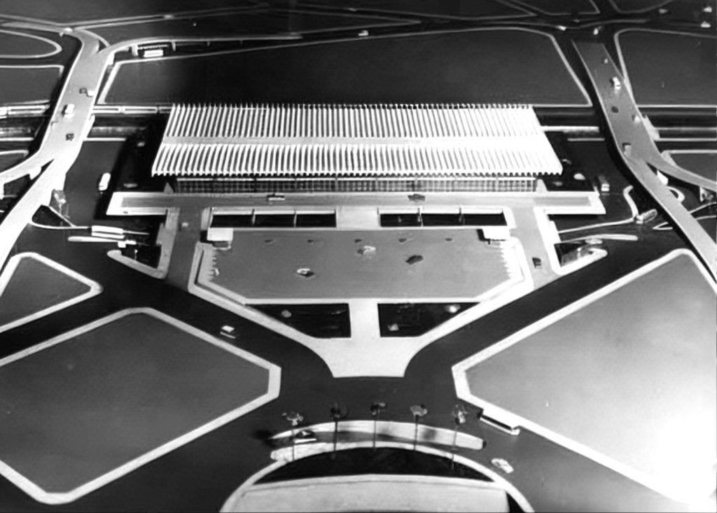 Maquete do Terminal Rodoviário de BH (1969), conforme projeto elaborado pela arquiteta Suzy de Mello e equipe, que se concretizou junto à Praça Rio Branco. (Crédito: Arquivo Público Mineiro).
