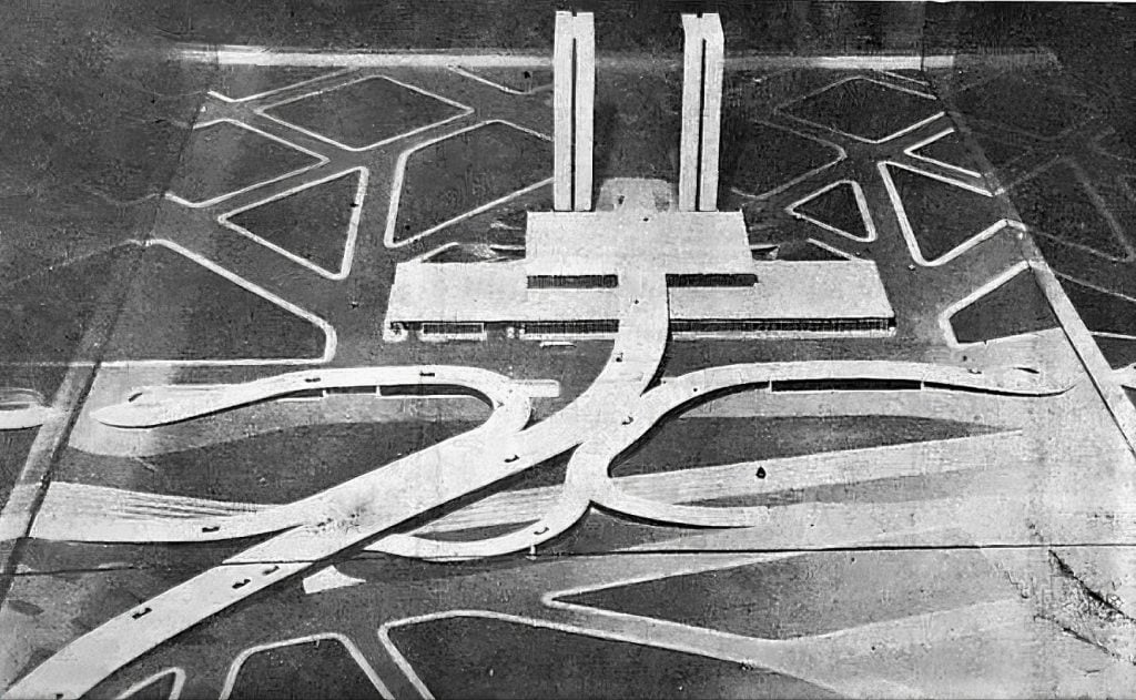 Maquete do Terminal Rodoviário de BH (1964) e o seu complexo viário no B. Lagoinha. O terminal ocuparia o terreno da antiga Feira de Amostras, em frente à Praça Rio Branco. (Crédito: Diário da Tarde / Hemeroteca do Estado de Minas Gerais).